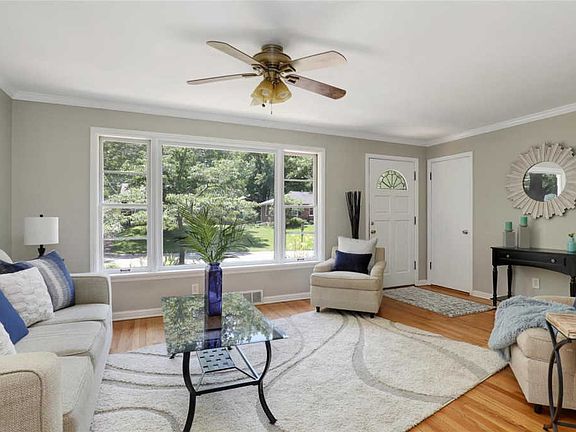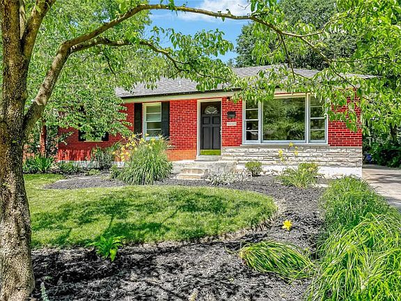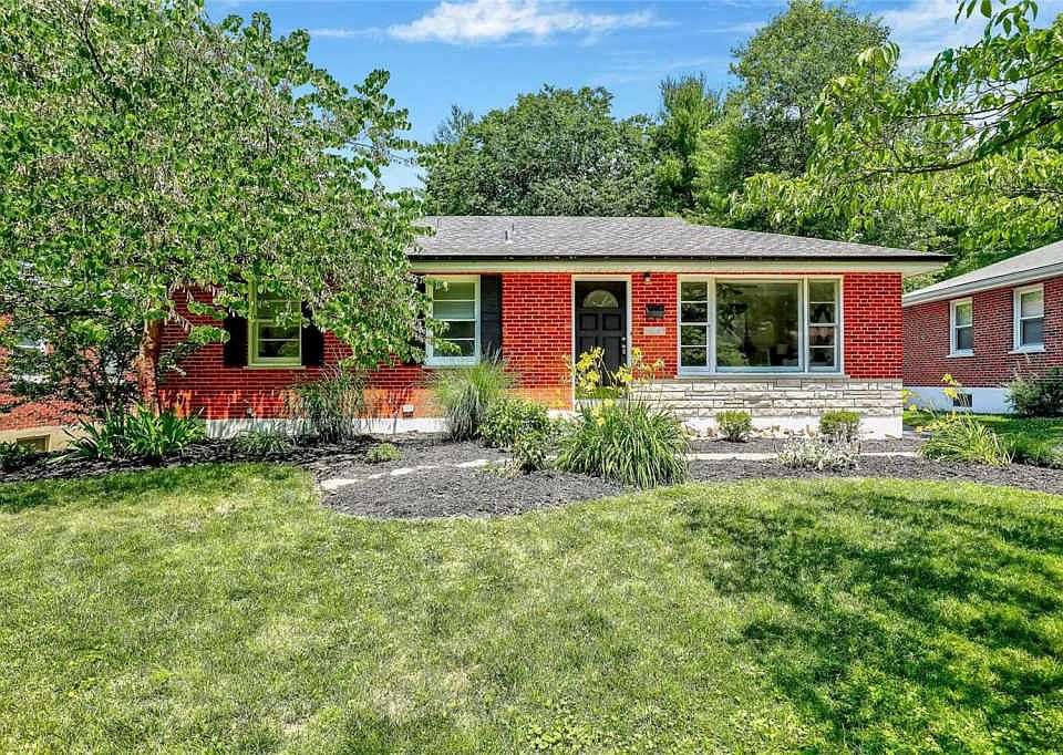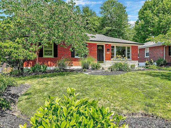 WARM & WELCOMING 2 BR/2 Bath - 1405 sq. ft. - All Brick Mid-Century Modern Ranch on a quiet street in the desirable Webster Groves School District. Beautiful curb appeal with a large nicely landscaped yard. Ready for its new owner! Newer roof. Freshly painted with some new flooring & other recent updates. This charming home features beautiful wood flooring, crown molding & large windows which let in oodles of natural light. One of our favorite features is the family room off the kitchen which has a wood burning fireplace. Both bedrooms on the main level are spacious w/ample closet space. Hall full bath services main floor. Lower level features a second full bath and three bonus rooms! Plenty of storage space as well. You will love the backyard & enjoy entertaining & spending your summer evenings outside on the spacious patio and deck! This is a great Rock Hill location just a few minutes from fantastic dining/shopping and highway access -- plus you can walk to parks, & playgrounds!