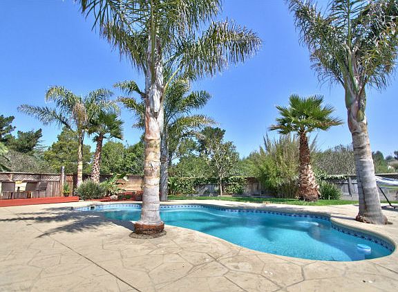 Your very own private resort! Gorgeous secluded level lot backing onto greenbelt area.Sparkling in- ground heated pool surrounded by magnificent mature palm trees, patios, decks & verdant lawns.Huge glass doors from living room & master bedroom to patio & pool. Enjoy the organic, raised bed victory garden, greenhouse & mini orchard. Drive into your circular driveway and start relaxing!