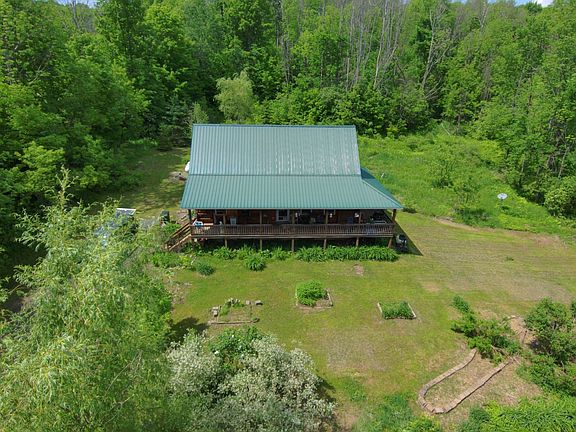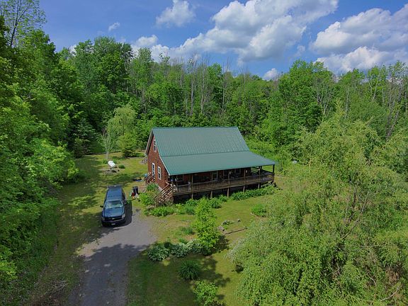 Set on 5 mostly wooded acres, you will find this immaculately cared for 2 bedroom, 1 full bath, 1,200 sq ft cabin, fully furnished in ADK style! Country charm with privacy galore, the cabin is located 100+/- feet off the road! Sit on your covered porch that wraps on two sides to enjoy this serene location. Inside you are welcomed into the open concept great room with warm tongue and groove knotty pine walls and high ceilings. The main bedroom and laundry are located on the first floor for convenience, with an additional loft bedroom on the second floor. All kitchen and laundry appliances stay. Wood laminate floors throughout. This is truly a move in ready home. The dry basement has poured concrete walls. Heating is propane forced air. Has its own well and septic. Wood siding and metal roof. Shed located on property stays. Close to snowmobile trails and State Land. Taxes do NOT reflect STAR program! Located in the Remsen Central School District.