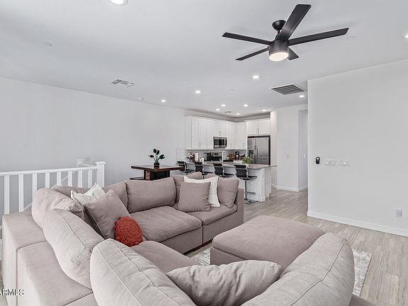 Nearly new 3 bed 2 bath townhome in the highly sought after Towns at Eastmark community. Enjoy breakfast at the eat-in kitchen, featuring stainless steel appliances, large pantry, quartz countertops. Modern open floorplan and neutral color scheme throughout. Relax at the end of day by watching the sunset from the balcony! Primary bedroom features dual sinks, walk in shower, walk in closet and plush carpeting! Attached 2 car garage. Extensive community features include community pool, walking paths, skate park, playgrounds, and more! Top rated schools and quick access to 202, restaurants and shopping.