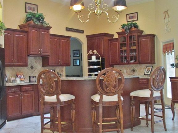 Prestigious 3BR/2BA w/ Custom Solar Heated Aqua Salt-System Pool + Extended 2-CAR Side-Entry Garage. Nestled Beautifully In a Serene Park-Like Cul-De-Sac Setting. This Magnificent Home is Amazing in Every Way. It Has Been Beautifully & Modernly Appointed With Premium Up-Grades Throughout. Special Features of this Home Incl. High Volume Ceilings w/ Crown Molding + Classy Tray Ceiling, Large Porcelain Tile + Wood-Tile Floors, Split BR Plan, Glass Sliding Pocketed Doors To Massive Screen Enclosed Lanai & Pool Areas That Provide High Fidelity Southern Comfort Living, A Flowing Open Floor Plan + Custom Culinary Kitchen w/ Cherry Wood Cabinets, Granite Counter-Tops, LG Floating Kitchen Island w/Serving Bar Open to Stunning Great RM Designed On A Grand Scale!