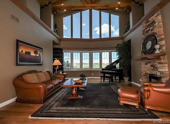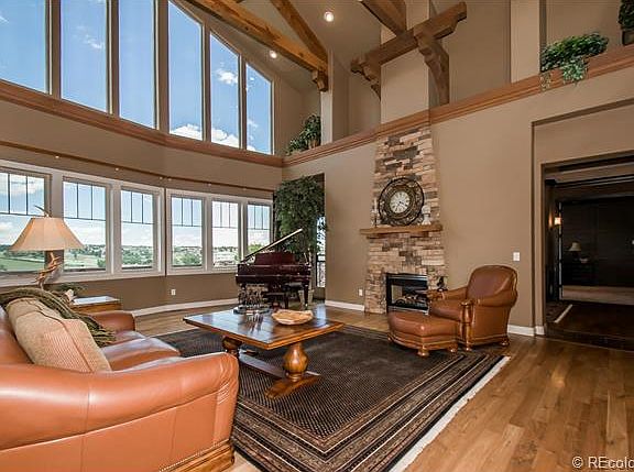 Welcome home to this gorgeous, Frank Lloyd Wright inspired ranch in stunning Parker, Colorado. Step in to soaring, cathedral ceilings & breathtaking views from every window on a premium 1.5 acre lot backing to open space. Entertain family & friends with more than 3,000 sq. ft. of expansive Trex decks with views of the gorgeous open space & Daniels Ranch. The spacious gourmet kitchen, w/Viking appliances, including two dishwashers is sure to impress w/breakfast nook, hearth room featuring walnut & slate floors. The private, main floor master is a dream! Cozy up any of six fireplaces. Retreat to your front yard with private oasis featuring pond & tranquil stream. Enjoy views of downtown and Lookout Mountain. The amazing location is just minutes from quaint old-town Parker & an easy 25 min. commute to downtown Denver & DIA. 5 golf country clubs within 13 minutes. With more than $250k of improvements in addition to the original Parade Home extras, this home is a must see & won't last long!