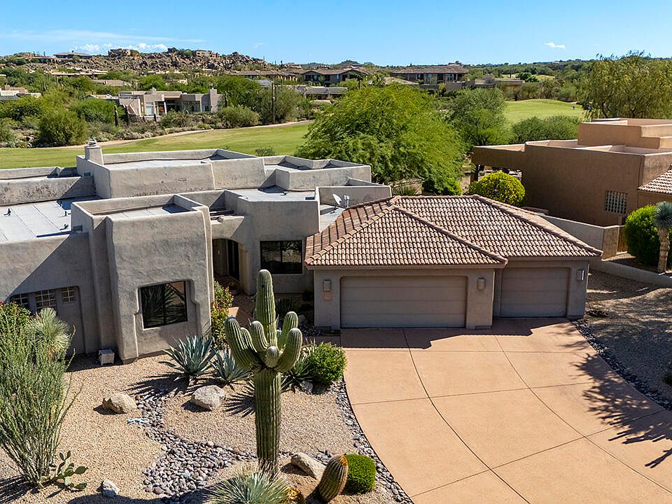 Step outside to your personal paradise, where the heated pool, in-ground hot tub, and putting green provide endless relaxation and entertainment. Gather around the outdoor fireplace or enjoy meals at the built-in BBQ/bar area—all overlooking the pristine 8th fairway of the Monument Golf Course at Troon.