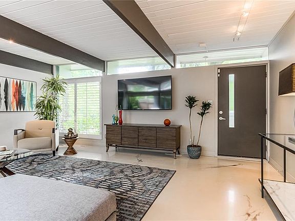 Captivating Mid Century Modern Masterpiece by Donald Drummond. This "H" design treasure is flooded with natural light through updated windows. It's open living concept and rare "H" design with butterfly roof creates an inviting space. Revel in the outdoor living with private patios and a stunning in-ground pool. Enjoy sleek, minimalist living with zoned heating and cooling, polished concrete floors, fireplace and convenient 2 car garage. A true gem located in Ninety Eighth Place, showcasing the epitome of modern sophistication. Seller is willing to entertain any and all requests that a buyer makes in an offer.