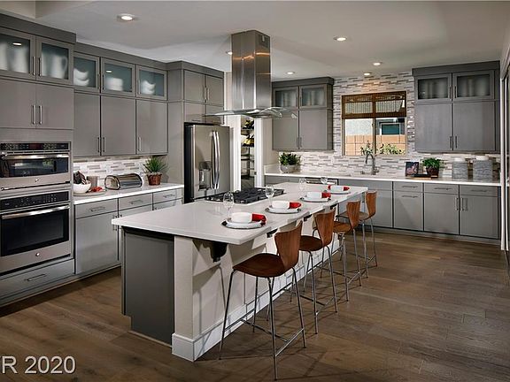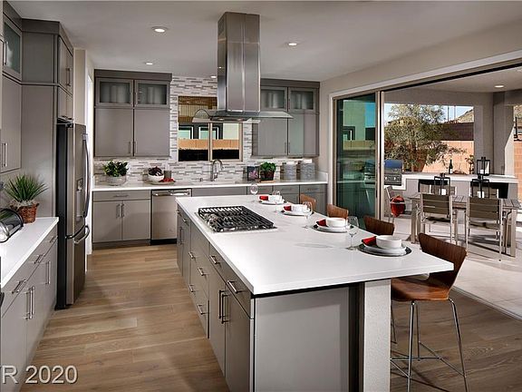 Beautiful single story former model home. This home is nestled against a mountain, giving full privacy and breathtaking views. Enter into a large open floor plan with upgrades throughout. Kitchen offers a oversized island with quartz countertops, double oven, and custom backsplash. Great room overlooks gorgeous mountains. Dining area boasts wet bar. Primary bathroom has huge luxury shower. Backyard is fully landscaped. Must see home!