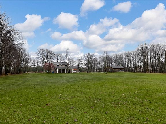 Don't miss out on this incredible opportunity to own a gorgeous house nestled on an expansive 12 acre property. Approximately 5 acres of meticulously landscaped grounds and another 7 acres of woods. Large Hickory out building 28 x 36 ft. House boasts 4 bedrooms 2 1/2 baths. Cozy up during the cooler months next to the beautiful fireplace. Summer has newer central air. During the warmer months, you'll be able to fully enjoy the outdoors with a covered patio. Whether you're hosting gatherings with family or friends, this is pure bliss! Paved public road and sewer.