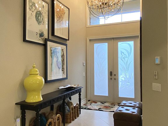 Fall in love with this rarely available, beautiful 3 Bedroom, 3 Full Bath, Open Floor Plan, ALEXANDRA GRANDE model home with 2 PRIMARY SUITES!!! Notice the Custom Etched Double Front Doors. Boasting a very spacious Great Room, Crown Molding and Millwork, Gourmet Kitchen, Formal Dining Room with Designer Chandelier, Upgraded Bathrooms, Fitted Closets, Accordion Shutters, Expansive Screened-in Lanai with Picture Window and gorgeous Travertine Pavers, and more. Valencia Reserve is a highly sought after 55+ community with a plethora of activities, clubs, 9 Har-Tru Tennis courts, Tennis Pro, Bocce, Cafe, Shows, Pools, Gym, Social Director, etc...Welcome Home!!!