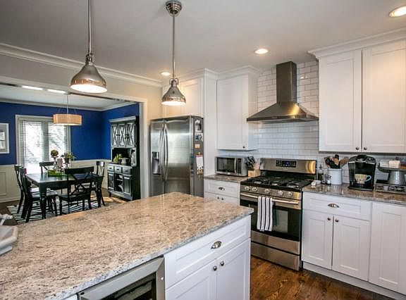 Fully renovated home checks off everything on your wish list w/no detail or $ spared! Chic & sophisticated high end granite & finishes highlight the modern open layout w/sun filled spaces.All new carpet,kitchen cabinets,refinished hardwoods,& 400+ sq/ft deck.Finished bsmt w/media room & dry bar.Sparkling kitchen w/ss appliances,oversized island,wine fridge.Sensational master suite w/walk in closet.Spa styled master bath w/HEATED floors & deep soaking tub. Plenty of storage in this three level home! Outside was completely updated with all new landscaping and stacked stone siding.