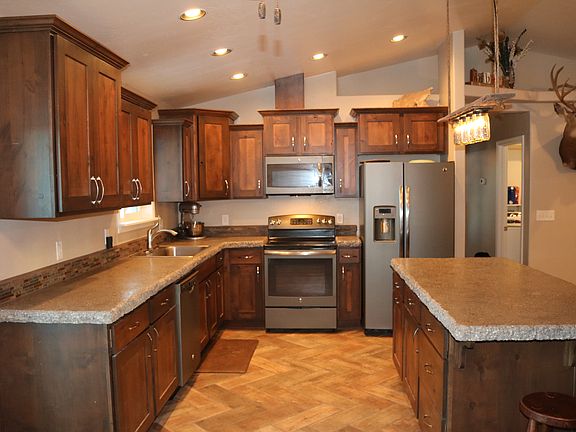 Builder's own home! Very nicely finished out and almost brand new home. Very large 2.68 acre lot, with views and endless opportunities. Vaulted ceilings in great room and master, custom concrete counters, stainless steel appliances, extensive wood look tile floors, and so much more! Do not wait, as this one will not last!Additional special items and features:Concrete countertops Wood plank tile Insulated garage walls and door'Insulated interior walls for sound 6' soaker tub in master Dual shower heads in master tile showerHis/hers master vanities Bed 2 has walk in closetWalk in master closet Open great room Split floor plan40' front porch Landscaping in front Wood burning stove raised so its out of reach of small children with wood storage below.