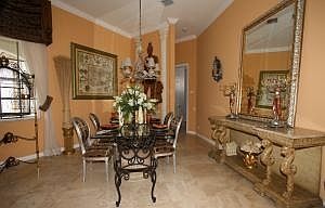 3 BR 2.5 BA BELLINI MODEL. Enter through elegant etched glass double door entry into foyer leading to open floor plan with Marble floors throughout. Kitchen features 42 cabinets w crown molding, and café area opening to family room. Sliders from F R and L R open to ext screened overlooking beautiful private garden. Master bedroom suite features his & hers closets, and bathroom with dual sinks, separate shower and Roman tub. 2nd Bedroom has private bath. Third bedroom is being used as den. Office area is set up at the entry to the laundry room. Community offers resort style indoor and outdoor pools, café, state-of-the-art fitness center,aerobics, billiards, cards, crafts, clubs, business center, library,har-tru tennis courts, professional entertainment with professional entertainment.
