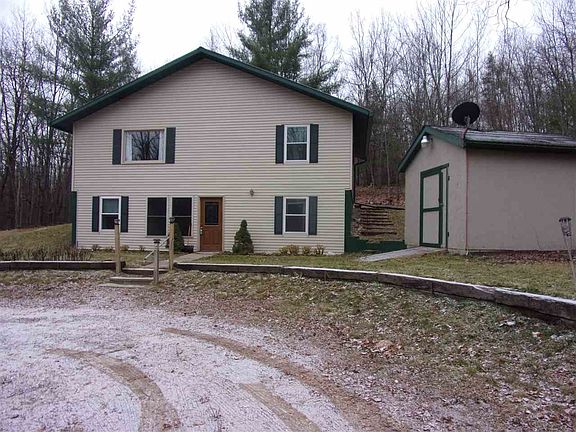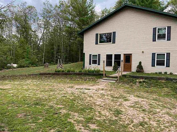 Looking to purchase something with square footage with that Up North Feel? This home offers over 1800 sq ft and is situated on over 4 acres. Located between town and expressway. Features 3 bedrooms, 2 full bathrooms, forced air wood burning system with backup propane. There are already trails established on the property. Schedule your appointment to view.