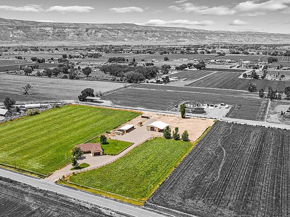 Property is currently under a contingency contract but Sellers encourage interested parties to take a look! Buyer may not be able to perform. Absolutely Amazing!! Come see this 9.5 acre property that has it all but no HOA! Lets start with a beautiful home remodeled in 2018, amenities include items such as central air, 4'x7' gorgeous granite island with a gas range/oven, in floor radiant heat, primary bath has a large walk in shower, home sports central vacuum, a wood burning stove, maple cabinets, large laundry room, new furnace and water heater and so much more. Outside there is a beautiful 12'x30' covered deck overlooking the grass pasture and accessing amazing views of the Colorado National Monument, immaculate large fenced yard, a dream 40x60 heated shop with 12'x12' and 14'x14' doors, an office, loft and 1/2 bath. This shop has industrial shelving inside and a 12'x60' awning outside to park RVs, equipment or whatever you need. There is an RV dump and full hookups, a 30'x60' equipment shed with no drip ceiling material to protect your equipment and hay from condensation, 10'x24 insulated chicken coop (chickens can be included) with attached 16'x51' enclosed yard for chickens, goats, dogs or small creatures and also a 10'x15' tack shed next to the 130'x50' dry pen with automatic livestock waterer and a 30'x12' loafing shed. The buildings are surrounded by well maintained open gravel area to accommodate trucks, trailers and equipment. The pastures have smooth wire to protect horses and 8" gated pipe for easy watering of the approximately 8 acres of pasture that produces around 400 bales of Orchard/Brome and small amount of alfalfa/grass hay a year. There are multiple water spigots around the property to clean equipment, wash trailers or water animals. As if this wasn't enough, there is still ample room for a large roping arena and possibly boarding facilities if desired. This property is amazing and still has potential for more. PLEASE NOTE: Thousands of dollars of upgrades and pasture improvements have been done since the Street View on online sites. Street View on Realtor, Zillow and sites are not current.
