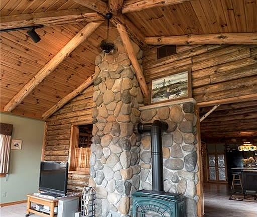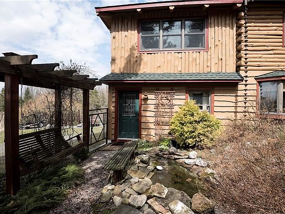 First time on the market. The beautifully maintained one owner log cabin is a beautiful oasis in the Skaneateles school district. The level lake access is over 300 feet and also includes a pavilion. Main level includes kitchen, dining, living room, laundry, and mudroom. Living room has beautiful stone detail that extends up to the vaulted ceiling. The second level includes bedroom with built ins, a second bedroom, an office and full bathroom. The lower level walkout has a full kitchen, 1 bedroom, 1 bathroom, a storage room, propane stove, and its own separate entrance . This level is perfect as an in law suite or finish to suit your needs. The 4.8 acres have been beautifully maintained and is a gardener's dream. Many unique trees, shrubs, and flowers. Sit next to your coy pond/waterfall and enjoy the sunset in complete privacy.