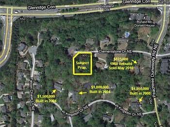 This wonderful one acre lot is in a prime Sandy Springs location just inside 285 and is a builders dream. The lot is in a cul-de-sac with a large circular driveway which is perfect to build your special home. The sloped lot has great character with mature hardwood trees and scrubs making it private and great for a three sided, daylight, walk-out terrace level. The lot faces north and has approximately 204 feet of street frontage and much larger than the portion of land that is fenced. The publically maintained street is on public water and sewer and the utilities are in place. Centrally located just minutes to the medical complex - St. Joseph's Hospital, Northside Hospital and Children's Health Care. It is also minutes to MARTA, 400, Dunwoody, Perimeter, Buckhead, and downtown. Award winning schools: High Point Elementary, Ridgeview Middle and Riverwood High School. The house and pool on the property is a tear down or needs extensive remodeling and is sold as is.