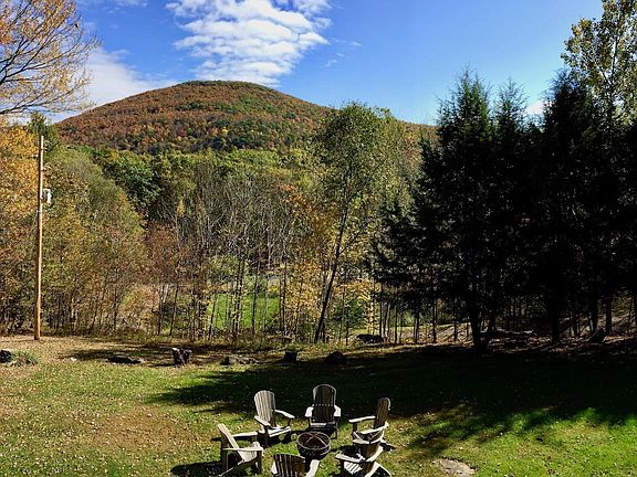 The moment you turn up the winding driveway to this intriguing mid 1970s all year residence perched on a bluff; you know that you are in for a treat. In keeping with Delaware County's wide-open spaces, this comfortable sized home with 4-bedrooms, 4 bathrooms including a fully contained 1 bedroom, one-bathroom apartment with a separate entrance, delivers commanding views of the Round Top Mountain range from multiple vantage points on this 6.28-acre property. Think seasonal rentals for the access apartment while you enjoy the rest of the home, or additional spill over space for friends and family while maintaining your privacy. On entering the entry foyer, there is a wood burning stove vented to the upper floor, delivering comforting warmth during those winter months. The second level open plan great room with loft media space, open gourmet kitchen and dining area lead to the covered porch with open deck area, offering multiple gathering zones for entertaining and suited to a leisurely breakfast while enjoying beautiful mountain views; an awe-inspiring way to start your day.Equipped with special features such as a separate master bedroom wing with an amazing view of the mountains from the picture windows; A sold Lean-To with fire pit set away from the main house along a path up to the woods and an entry way stone patio which is another inviting outdoor living space. A total refresh was done to the house during the past year. This included all new lighting fixtures; nest thermostats installed throughout to allow for the remote monitoring and control of the home; all new gutter system installed; defining the ground level laundry room by adding essential fixtures and barn style doors; complete painting of the home and sprucing up of the outdoor gardens and grounds.