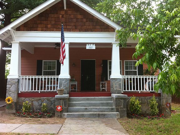 This city-style home with tons of craftsman charm is nestled in the Summerhill/Turner Field community and offers a large fenced level-lot with wonderful curb appeal along with an inviting & spacious rocking chair front porch. This 3 bedroom, 2 & 1/2 bath home also features bathroom-access for every bedroom, soaring 10ft ceilings, and it has double windows flooding light into every corner of the home. Thoughtful design elements like extra-wide crown molding and dramatic arched doorways that hint at a traditional use of space while connecting living/dining/kitchen spaces