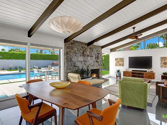 Presenting William Krisel AIA's popular Gable roof-line house with its soaring entry and triangular clerestory windows at each end that seem to make the tongue and groove ceiling float upon the home like a big umbrella. Everything here is essentially new. A recent floor to roof renovation has transformed this home into a state of the art residence that is both evocative of the late 1950s when it was built, while living beautifully for today. Here we have the classic and efficient 3 bedroom/2 bath design that Mr. Krisel perfected in 1957 with these Twin Palms homes. For Krisel's architectural language, indoors and outdoors were treated as a whole and there is plenty of outdoor space all around the property that makes our famous indoor/outdoor living so compelling here. Come see why this home and neighborhood is there perfect weekend getaway or full time residence.