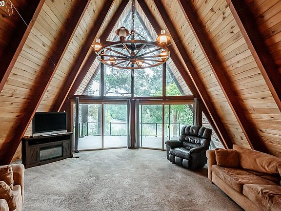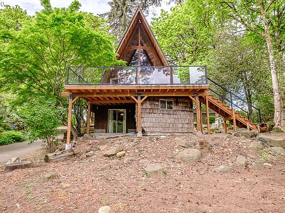Clackamas River frontage! This unique property features an A frame house (1216SF), legal second residence with an additional 740SF, large shop, river access w/trail, views and more! Enjoy the lovely views from a new deck off the main house. Live in one home, rent the other, have a home office? Recently used as a home business and an Air BnB. Wooded setting makes it feel like you're tucked away from the city. Property is not in flood plain! Owner is a licensed real estate agent in the State of OR