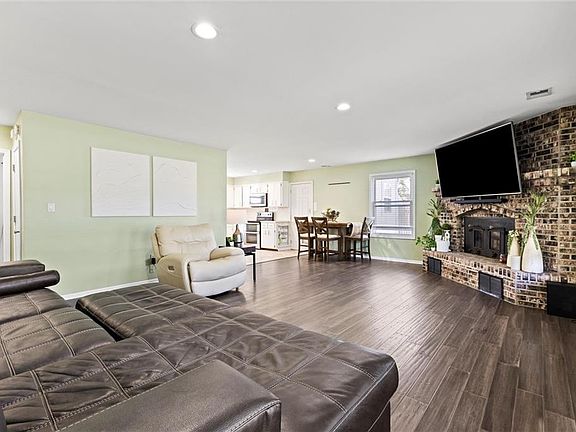 The heart of the home is the large great room, where a gorgeous brick fireplace provides a cozy focal point. The open concept flows seamlessly into the kitchen, which boasts stainless steel appliances, tile flooring, and plenty of space to entertain. The main floor also includes a mudroom and laundry area for added convenience.