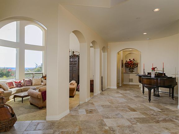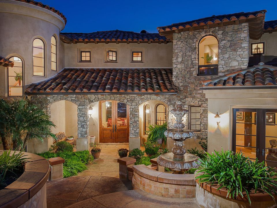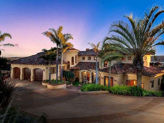 Extraordinary Tuscan Estate. Breathtaking panoramic views of the ocean and stunning architecture will captivate you from the moment you step through the doors. Character and charm beyond compare with 60+ arches, 30ft+ ceilings, luxury finishes, dramatic formal entry and lush landscape. Views of the Del Mar Race Track, polo fields, lagoon, mountains and ocean. Watch the sunrise and sunset. Ultimate privacy and ideal location at the end of the cul-de-sac with no one directly above or below. A true landmark!