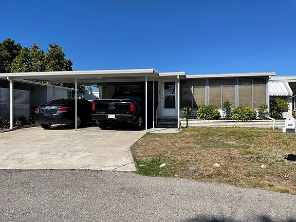 CLEAN, COZY AND READY!! to this new listing on 985 Konoma East, in Bay Indies! This home has many sought after features, such as: Split floor plan, Multiple vehicle parking, large front lanai and on a quiet cul-de-sac! Also don't forget to add 180 ft.² of air-conditioned space for the Florida room in the front of the home! It is a two bedroom, two bathroom home with new hard surface flooring and fresh paint throughout. It comes mostly furnished and can be turnkey if desired. When you walk into the large front lanai it will give you such a homey feel you'll surly to want to sit and enjoy the gulf breeze. The living room is large and cozy and a wonderful place to entertain friends and family. The master bedroom has a queen size bed but there is room for king if that's what you prefer. There is also plenty of closet space and a separate dressing room with a door to the private walk in shower. The sun filled guest room can be used as a den, office, or a place for you to relax. This is a must see Home as the pictures do not do it justice! So Make an appointment to see this freshly landscaped home that you can make your own!