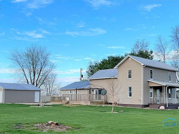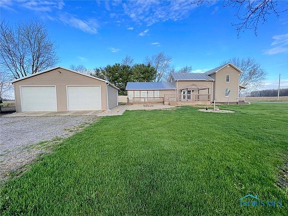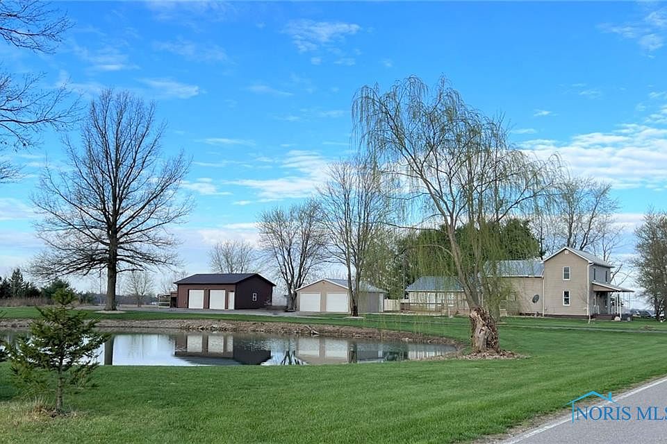 This farmhouse sits on 5 acres and has 2 bedrooms with the possibility of 3 bedrooms and 1.5 bathrooms. The home features a living room with a pellet stove, a large family room, laundry room on the main floor and an eat-in kitchen. Relax and entertain on the deck that overlooks the yard and pond. There is also a 2-car garage (24x24), a building/shop (32x24), and a shed. Located in the Wynford School District. Windows, A/C, Well – 2012, Septic- 2013, Hot Water Heater & 2 Sump Pumps-2023. Owner selling “as-is”.