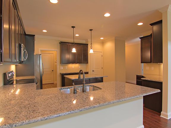 Stunning 3BR/3BA brick home. Master & 2nd BR on main. Soaring high ceilings. Large kitchen has granite, stainless steel appliances, backsplash, island with outlets and overhang for stools. The main level has been upgraded with beautiful hardwood throughout and tile in the baths Gas Fireplace. Beautiful sunroom w/tongue & groove ceilings and french doors. Crown molding enhances the living spaces on the main level. Large bedrooms each with attached bathroom. Upgraded walk-in tile shower with seat in master bath. Lots of storage. Additional finished space (Approx 13.5 x 7.5) for crafting/hobbies/storage upstairs. 2 car garage with insulated garage door and above storage. Security system. Located in private section of s/d. Neighborhood Pool and sidewalks!