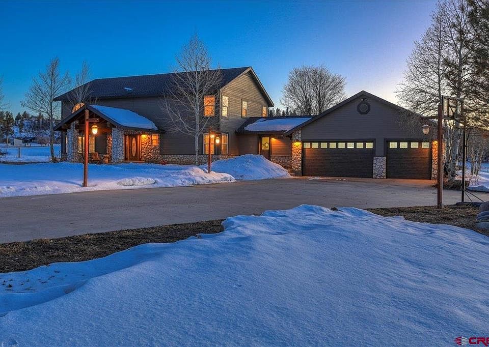 PRICE IMPROVED 8/8/24**** Grab your wish list and be ready to check boxes: HIGHLIGHTS: Not in PLPOA Close proximity to everything uptown Pagosa Springs Paved roads to your huge concrete driveway Five beautiful acres with Panoramic Views of the Peaks Oversized finished Garage/Shop 3 Bedroom + Bonus Room + Loft Office This wonderfully inviting home enjoys panoramic views of the meadows, valleys and majestic San Juan Mountain peaks surrounding the spacious and horse friendly five acres the home inhabits. The residence is conveniently located less than a five minute drive from everything uptown with paved roads leading past the entry fencing and into your oversized private drive. You'll instantly appreciate the country feel of the setting and surrounding community. You'll especially enjoy the room to spread out and play. The home has two small spring fed ponds immediately behind the home. Welcome... a large Covered entry welcomes you into this warm and spacious home. Once inside you'll be smitten by its towering ceilings, prominent custom stairway and wonderfully bright and spacious open loft/office above. The solid hickory floors and inviting interior colors set the tone for this upgrade-loaded offering. It has been tastefully enhanced with modern GE appliances, an abundance of chiseled edge travertine flooring, new carpet, solid panel interior doors and lavish plumbing and lighting fixtures and door hardware throughout plus the addition of many custom tile features. The main level living room is sizeable and wraps around with space for an open dining experience. The kitchen is just beyond and features a bold look and feel with upgraded cabinetry, pot fill feature above the range, an attractive custom tile backsplash, chunky range hood and new slab granite countertops (throughout the home and baths). The kitchen handily opens into a bonus family/game room offering an eat-in kitchen bar. The game room has a sliding glass doors to the back and covered patio. Between the family room and garage rests a large utility room with great added storage, custom cabinetry, granite countertops and second entry. Before you travel upstairs you'll find a private bedroom and bath...oh, and a magnificent garage/shop. The homeowner believes it will house up to six vehicles and it has full concrete flooring, insulation, finished walls and is heated with multiple front and back entry doors. The two facing the front of the home are high end and newly installed. This area has the potential to be a dream space for countless hours of enjoyment. Back inside the home you'll travel up the stairs to two more bedrooms and baths plus open loft. The master bedroom is very spacious and delightfully upgraded, bath and all. Oh, and did we mentioned a bonus room upstairs which might serve as a hobby room? As you invest time in the home you'll continue to notice enhancements in every room plus the fact that the large windows welcome the sunlight on both levels and throughout the home. Side note: The home shows like a four bedroom but the septic system is designed for a three bedroom dwelling so we'll call that fourth bedroom a "bonus room." Outside, you'll appreciate the mature trees, fencing and freshly upgraded walkways plus a private concrete bonus patio (outside the main living room) for enjoyment during the warmer months of the year. The hot tub on the back patio conveys with the home as well. Please note the larger acreage horse ranch which rests along a rise above the south boundary of the home, Yes, the neighbors are all spaced on similar sized lots around this expansive development which assures some great privacy and ranchette charm. This very special offering is priced competitively and is ready for a new owner. Plan to see it today and take your time envisioning your enjoyment of this exceptional home while you're there.