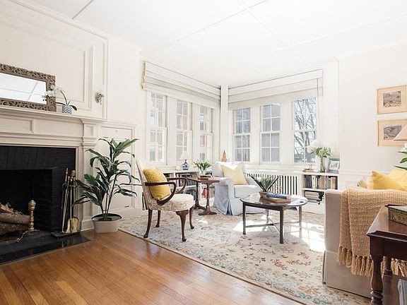 All showings by appointment. Beautiful Harvard Square 5th-floor south-facing apartment set back from street, in sought-after, well established coop building. Gracious & large living & dining rooms with cross-ventilation, period detail, handsome fireplace, water view. Hardwood floors. Eat-in kitchen with arched windows. Large basement storage. Possibility to enhance utility and value by creating 2nd bedroom. 2nd half-bath or full bath can be added with approval. Long vistas. Good-size newer insulated windows. Excellent volume of natural light. Fully owner-occupied per cooperative requirements. Stately early-20th-c. landmark building. Landscape beautifully maintained by dedicated staff. Professional management. Elevator. Common laundry. Real estate taxes and heat and hot water included in monthly fee. At rear of building, large fenced garden for use of coop's residents & guests. Two live-in superintendents. Rental parking available nearby.