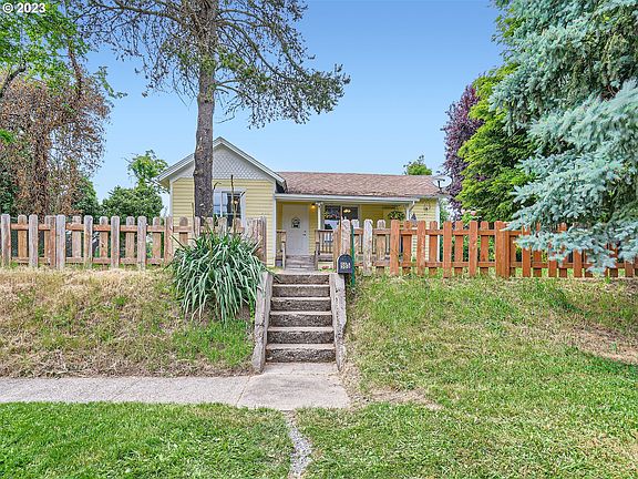 Adorable vintage cottage home located in Woodburn surrounded by fields on two sides. As you arrive you will notice the home sitting above the street. Enter through the cute front fence and onto covered front porch. The tall ceilings make this cottage feel even larger. This home has many updates including: vinyl double pane windows, paint, and bathroom updates. Nice useful laundry room / pantry off of kitchen with exterior side door. Lots of possibilities with the fully fenced large yard. Located a few blocks from Downtown Woodburn. Come and see it!