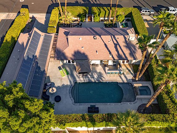 A Polynesian Alexander Pool Home On Fee Land In The Heart Of Central Palm Springs. Located in the Oasis Del Sol neighborhood, this beautiful and upgraded Alexander homes features a three bedroom & two bath main home plus a detached guest house featuring a living room with full kitchen plus bedroom & bathroom. The west facing backyard is lined with a mature ficus hedge giving ultimate privacy along with a beautiful view of those San Jacinto Mountains. Backyard features an extended pool with tanning deck, spa and great outdoor kitchen area. The main house has a spacious living room, kitchen opening to the dining room plus an en suite master bedroom, two guest rooms and a guest bathroom. The guest house has a recently renovated kitchen plus newly remodeled bathroom. Enjoy total privacy and great additional security as the home is a compound with a walled in courtyard at the front. Inside Laundry. Leased Solar for affordable energy costs. Oasis Del Sol neighborhood is located just minutes from downtown Palm Springs and all of it's great restaurants, shopping and the casino. Call me today to see this incredible property.