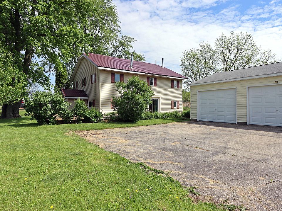 Opportunity to create equity by doing the work to update & renew this spacious Urbana area home set on nearly an acre of tree-lined property. A gated driveway leads into the spacious, fenced yard area all around the expansive 6-BR, 3 Bath, 2-story home. Wonderful yard with space for gardens & all manner of outdoor activities, featuring a Deck along the front & side of the house, plus a huge detached 3+ car Garage with workshop space & electric. The main level of the home has a large Living Rm with woodstove, Dining Rm, Kitchen with space for Dinette, 2 pantries & desk, Laundry/Utility Rm with back door, & large multi-purpose Room with ensuite Bath & sliding door to Deck. 6 upper level Bedrooms & 2 Full Baths. Concrete walls on main level, metal roof, insulated windows & more. See it!