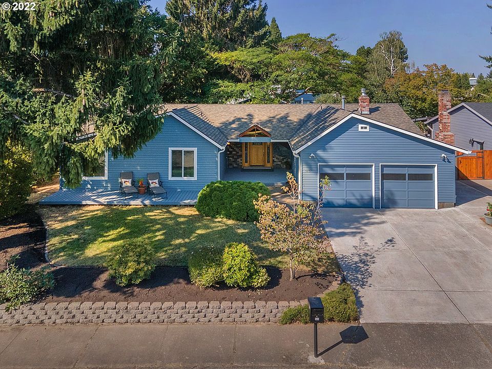 Sought-after 4 bedroom, 2.5 bath Ranch on large corner lot w/ fully fenced backyard. New Exterior paint, Newer concrete driveway w/ RV parking. Vaulted ceilings and skylights create spaciousness in main living areas and Primary Ste. Gas fireplace insert, covered back deck, solar tubes, and mature trees curate a welcoming space in all seasons. Solid wood cabinets, wood trim and custom inlaid wood doors throughout. Enjoy sunrise skies from large front deck and secluded side patio. Make it yours!