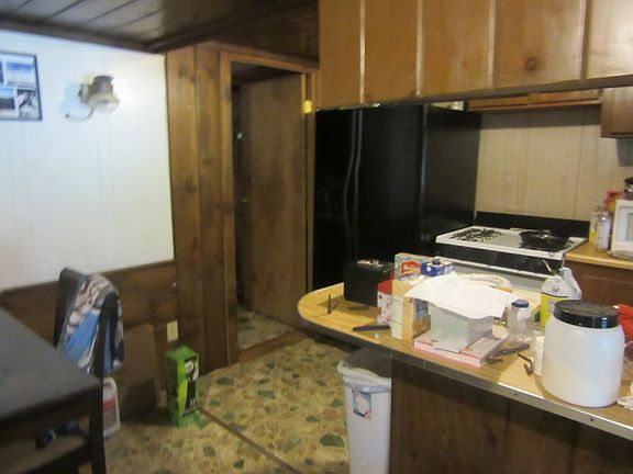 Knotty pine walls make kitchen and living room attractive. One of the two bedrooms has no window and the other is a step down room. Looks like this was a small cabin (no basement) that grew. Attached garage. Extra room off back of house makes good storage. There are 2 additional buildings: one is behind the house and is currently used as storage but looks like it was a workshop. Very decent building with many uses. Second building is a storage building ideal for outside equipment. It's to the right of the house. The lot is nice and is located in an area where there are opportunities to hunt. There's a large enclosed front porch on the house. Home is currently rented so we need to give notice before showings.
