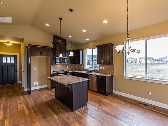 Vaulted great room is open to dining room & gourmet kitchen featuring a large island, granite countertops, laminate flooring, tile,SS appliances & a pantry! Vaulted master suite offers a large soak tub,separate shower and a walk in closet.Plus,a 3 car garage & a covered patio!