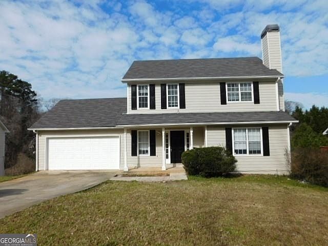Home with covered front porch. Main level has dining and living room combo (living room has fireplace), 1/2 bath, kitchen with white cabinets, pantry, and black appliances (refrigerator, gas stove, dishwasher & range hood), breakfast area with access to the rear deck. Laundry closet with washer/dryer hook-ups. Upper level has two spare bedrooms, full hall bath with tub/shower combination, master bedroom and master bath with soaking tub and separate shower with enclosure. There is an unfinished basement for lots of storage and a 2-car front entry garage. Home has luxury vinyl planking throughout (no carpet). Windows that are 1 year old. Investor owned - being sold 'as-is'.