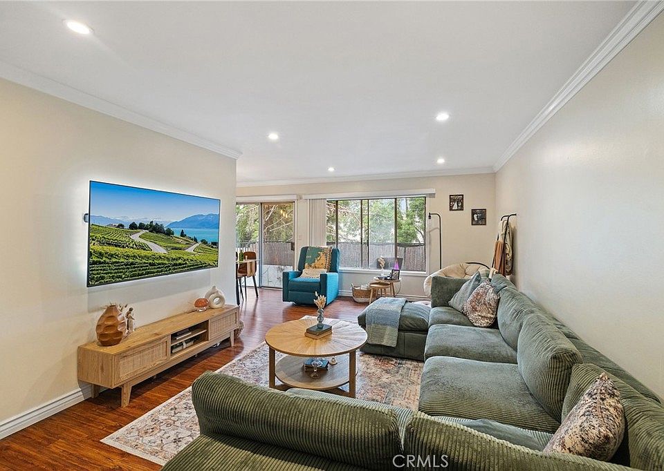 LOWER LIST PRICE THIS WEEK ONLY!! This community has it all! Woodlake Villas is surrounded by trees birds chirping and quite walking paths. Upstairs you'll find this 2 bedroom 2 bath unit gorgeous laminate flooring throughout, large family room and dinning area. Huge primary suite with large closet. This home is bright and cozy with recessed lighting, crown molding, stainless steel appliances, and upgraded bathrooms. 2 covered carports that can be converted to garages. Outdoor patio with views of trees for your morning coffee. This community has a pool, BBQ areas and great areas to walk your pets. Location is close to everything you need for shopping, dinning and entertainment. This one won't last!