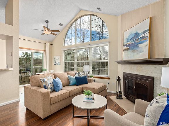 Home, sweet home!! Don't miss out on this charming upstairs end-unit in the peaceful Sun Valley West Condos! Come inside to find a welcoming living & dining room, a cozy fireplace, designer palette, tile & wood-look flooring in all the right places, vaulted ceilings that add to the airy feel, and tons of natural light flowing throughout. The kitchen features stone tile counters, glass tile backsplash, ample cabinetry, and a pass-through window with a breakfast bar. You'll love the Jack & Jill bathroom, giving the bedrooms direct access. The sliding doors open to the lovely balcony, where you can relax while enjoying your favorite beverage! Don't forget the detached 1-car garage and an assigned parking space. The community offers open spaces, lake view, and a refreshing pool. Excellent location close to schools, parks, shopping, dining, and highways. This gem is truly a must-see!