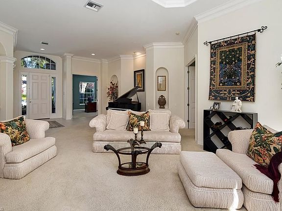 H.11462 - Welcome home! Warm & inviting home located in the desirable Gables neighborhood of Pelican Marsh. A light-filled open concept plan in a tranquil neighborhood setting. Beautifully updated with a grand foyer entry, soaring ceilings, and French doors throughout. Imagine fun filled gatherings in this chef's kitchen accented with granite countertops, stainless appliances, wood cabinets, expansive center island plus a fantastic view of the pool and lush landscaping. There's even a pass through window for serving al-fresco dinners on the lanai after a relaxing swim or soak in the spa! The private sumptuous owners' suite has all the amenities and more for pampering yourself after a long day; sitting room, large spacious bedroom, splendid spa tub and shower, dual vanities and ample walk-in closets. Two additional guest suites in their own wing have custom closets, plush carpeting and plenty of space for hosting friends in style and comfort. Seamless indoor-outdoor transitions throughout the home that's perfect for a tropical lifestyle. Meticulously maintained grounds and private rear yard! In the ultimate location, Minutes to shopping, beach. Brand new master bath and half bath!