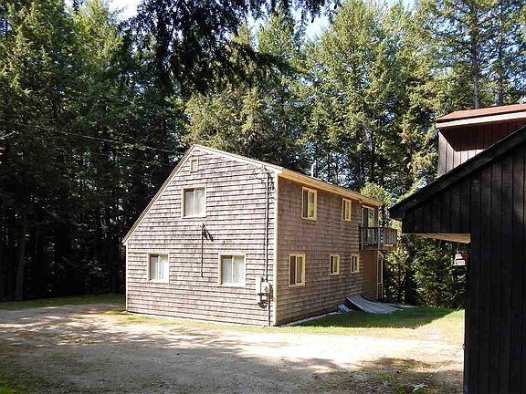 Tucked into the woods & perched high on the banks of the Mad River, this home seems worlds away yet it's actually close to everything you'd want. It's less than 1 mile from Campton Elementary School & only minutes from I-93, shopping, restaurants as well as an easy drive to Waterville Valley, Loon Mt, Plymouth State University & the Lakes Region. The heart of this home is the open concept kitchen/living/dining area with cathedral ceilings. There's plenty of kitchen storage in the floor to ceiling pantry cupboard. You'll want to use the efficient woodstove to keep you warm in winter. Enjoy your morning coffee on the 3-season, screened-in porch overlooking the Mad River. The first floor also has two bedrooms and a full bath. Upstairs you'll find a master bedroom suite - a large bedroom, bath and sitting area with its own private balcony. The partially finished basement has lots of room for storage and is kept cozy with the use of the second woodstove. Would make a great space for a family/game room or a spot for your exercise equipment. The detached 2-car oversized garage with loft has room for your vehicles, boat or 4-season gear. Great house for a primary or a vacation home. Call today to see this unique property.