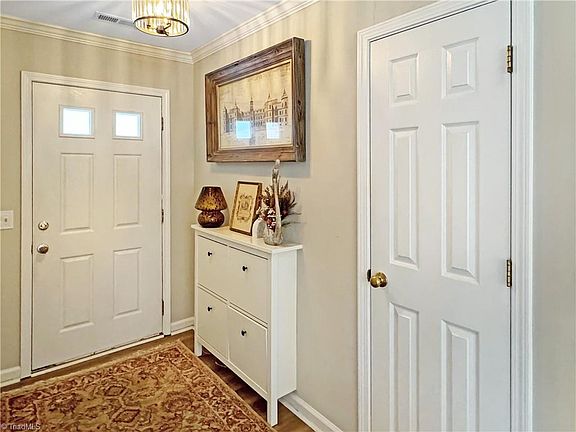 Beautifully updated and ready for you to move in! Brand new A/C! New flooring throughout! Large kitchen with new quartz countertops, new sink and plumbing fixtures, and stainless appliances leads to the breakfast area, which features a bay window for lots of natural light! Don't miss the butler's pantry with custom shelving as you make your way to the dining room, complete with built-in storage! The living room, with vaulted ceilings and a fireplace with gas logs, will be a favorite place to gather! The primary suite is so spacious, you can fit even the largest furniture! Step into the primary suite bathroom and fall in love with the updated countertops and finishes! A large 3 season enclosed patio (not included in square footage) has access directly from the primary bedroom, and will surely be favorite space to relax! Outdoor entertaining is easy on the large patio, and you'll have room for all of your tools in the storage building. Ward/Clemmons/West Forsyth schools!