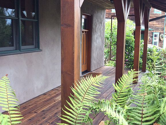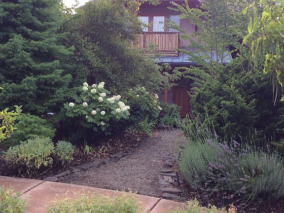Superb custom built home,beautifully crafted w/sustainable materials. Mediterranean courtyard style open great rm.South wall of windows. Wood beams have handcrafted metal work, slate & tile throughout. Passive solar, radiant in-floor heating.Separate studio/office.Covered patio & private yard, a lush oasis! Quiet, ecological neighborhood in south Eugene. Newer 400 SF shop/garage. Twice featured in Bring Sustainable Home Tour.