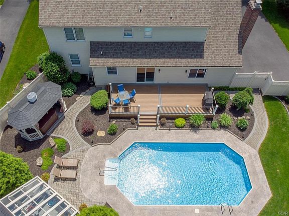 So much to love about this classic yet stylish, 4 bedroom, 4 bath, Colonial style home in East Penn's beloved Clearview Manor neighborhood. The show stopper is the private, fully fenced, backyard oasis featuring inground pool, hot tub/gazebo, Trex deck, greenhouse/poolhouse, lighting, patios and lush landscaping. Inside, there is over 3200 square feet of living space including the crowd pleasing theater room in the finished lower level. Enjoy the brand new eat-in kitchen and cozy family room with fireplace. Upstairs, in addition to three other bedrooms and a hall bath, the expansive master bedroom suite offers a private full bath and walk-in closet. Conveniences and updates include oversized two-car garage, full basement with storage, new roof, new water heater, water softener & new heat pump/central AC. Located in a popular neighborhood and close to everything, this is the perfect house to call home! Please be sure to view the professional 3D walkthrough tour. 2020-06-12