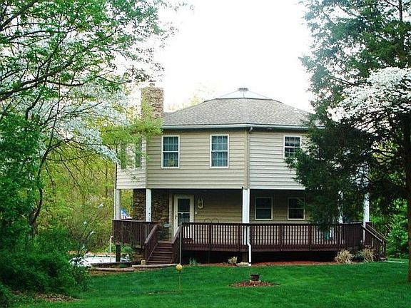 ESCAPE FROM THE ORDINARY in this Haycock Twp Contemporary! Amazing custom built home is nestled on 5.29 acres, down a long secluded driveway hidden from the road. This 6 years young retreat boasts 4 BRs, 2.5 BAs. Nothing cookie cutter about this home with its unique shape, wrap-around porch, angled walls, soaring ceilings, gourmet kitchen, stone fireplace & 12 ft. round skylight in the center of the home! Lower level would make an excellent work-out room or office for a home based business. This home is truly one of a kind & is waiting for you to call it home. 1 year warranty. Bring offers! Priced to sell quickly! $535,800. Call Michele 215-820-2209. Directions: 309 N, make Rt on 313 E, make Left on Thatcher Rd, keep left on Thatcher over bridge, property on Left. (near Covered Bridge Rd.)