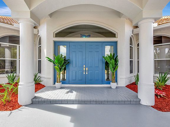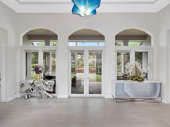 A rare find in the private Whippoorwill Lakes community, this unique estate sits on a spacious 2-acre corner lot. With an elegant portico, two 2-car garages, and a circular driveway lined with royal palms, it offers both style and convenience. Recently renovated, the home features soaring ceilings, a brand-new kitchen, and updated flooring throughout. The split floorplan provides stunning water views, while lush landscaping, including fruit trees, adds to its charm. A perfect blend of comfort and sophistication.