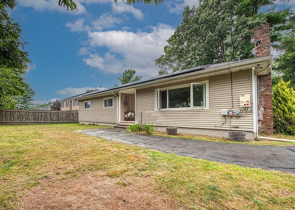 Rare find! Spacious Ranch-style home with great space for entertaining and large private fenced yard! Oversized living room has a beautiful stone fireplace with wood mantel and picture window allowing for lots of natural light. Updated eat-in kitchen offers granite countertops and island, ample cabinets, stainless steel appliances, dual refrigerators and new recessed lighting. Adjacent open concept dining area with stylish barn board accents and tile floor. Large sliding door opens to the family room. Main bedroom has recently exposed hardwood floors, double closets and half bath ensuite with new pendant light. Two additional bedrooms with hardwoods and a third with hardwoods under the carpet. Full main bath with tub/shower and tile floor. Unique opportunity to uncover the potential in the partially finished basement with full kitchen and roughed in full bath. Vinyl siding, updated electric, solar panels, new windows, storage sheds and more! Property will be sold in as-is condition.