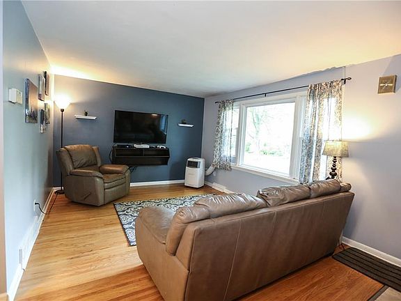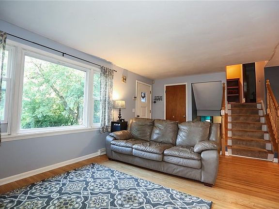 Spacious floorplan and refinished hardwoods throughout much of this adorable side by side Split Level. Large lot with mature trees and loads of shade for a hot summer day. Built in mulched Play ground with wooden play set. Interior with modern colors throughout the house 4 bedrooms, 1.5 baths. Finished lower level with Large Family room with a wood burning stove, 1 bedroom with an en suite half bath. Laundry room with built in shelves and cupboards has an exterior exit to the backyard. Basement has a Rec Room/Play room. Over-sized 1.5 car garage with workbench. Convenient Location! Close to shopping and dining!