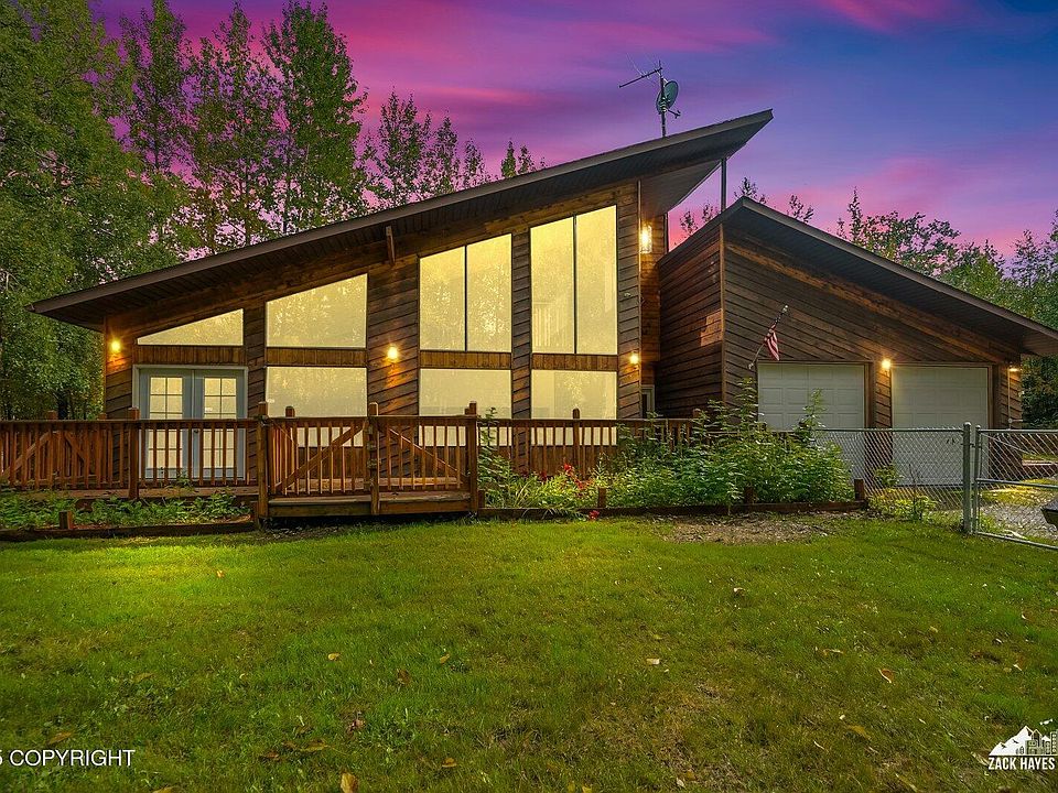 Charming 4 bedroom, 2 bath, oversized 3 car garage home on private, flat 1.54 acre corner lot with a fenced yard! Welcome to this beautifully maintained home with a spacious open layout, abundant natural light. Equipped with a wood burning stove and sauna for comfort. The large main upstairs bedroom boasts a beautifully remodeled ensuite bathroom and private deck. This home has it all!
