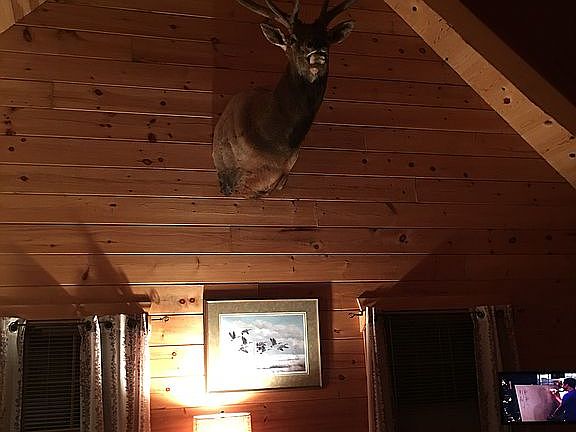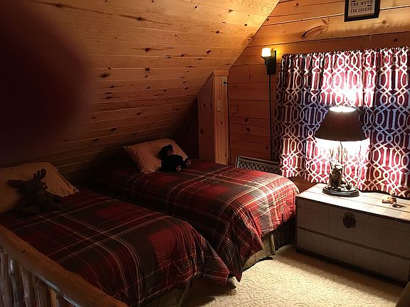 Log cabin, with large garage on treed .60 acre lot. Short walk to boat landing on Lake Kabetogema. Large wrap around deck and deck on back of the cabin. Loft upstairs has two twin beds and one full size bed to accommodate guests. A 24 x32 pole barn on a cement slab has room for all the toys and two vehicles. Fire pit and lots of green space around the cabin for the grandkids to play and explore the outdoors. Cabin is private and located off paved county road. Wildlife is abundant and the fish are always biting somewhere on Lake Kabetogema.