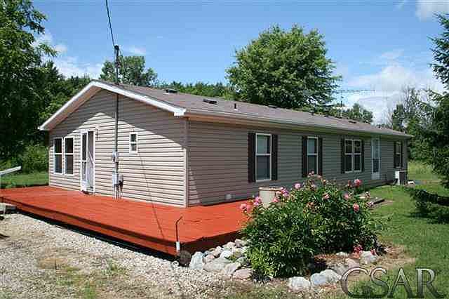 4 BR, 2 full baths on 3.30 Acres in Antrim Twsp., Morrice Schools! Spacious, manufactured home with central air, 2 car, detached garage plus 8x24 storage shed. Nicely painted wood deck offers outdoor enjoyment and gorgeous nature views of neighboring wooded acreage! Washer, dryer, stove and refrigerator included.